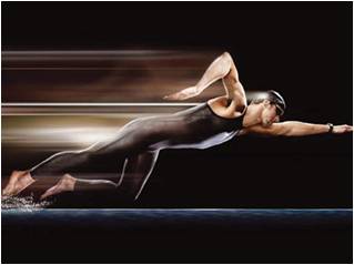 (그림; 상어피부의 거친 면이 오히려 물의 저항을 줄인다) (물고기피부(하)와 이를 모방한 수영복표면(상) (그림; 전신 수영복으로 물속을 날아봐?(우)
