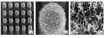 이와 유사한 구조를 나노수준, 즉 수 nm 사이즈의 구조를 만들 결과 접촉가기 173도까지 이룰 수 있었다. 이는 물방울이 거의 완전히 송곳처럼 표면에 서 있다는 이야기이다. 연꽃잎의 접촉각인 153도 보다도 훨씬 소수성이 높아졌다. 사람이 자연에 있는 잎의 왁스물집보다 다양하고 우수한 물질을 사용한 결과이기도 하다. 역시 인간이 자연을 이해하고 나니 이보다 더 우수한 물질을 만들어 낼수 있음을 보여주는 결과이기도 하다.