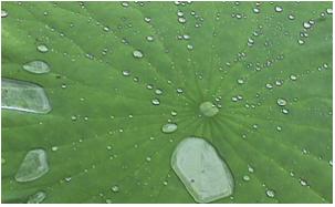 새벽안개는 그곳에서 물방울로 남아있다. 연꽃잎에 남아있는 물방울은 그곳에 붙어있지 않고 굴러다닌다. 물방물이 구를 때 소리가 난다면 아마도 ‘또르르’ 라고 할만큼 경쾌하다. 다른 나뭇잎에는 물방울이 붙어 있다. 왜 유독 연꽃잎에만 물방울이 구르는 것일까? 이런 현상을 "Lotus Leaf Effect (연꽃 잎 효과)" 라고도 불리곤 한다. 이는 연꽃잎의 구성성분이 아주 강한 소수성이기 때문이다.