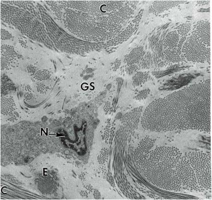 독성분이 몸에 빨리 퍼지려면 혈관을 침투해야하고 그러기 위해서는 일단 피부 내에서 확산이 되어야한다. 하지만 우리 몸은 그리 만만하지 않다. 피부 내에 있는, 정확하게는 표피아래에 있는 진피 중에는 히아론산이라는 끈끈한 물질이 차있다. 개구쟁이 코 밑에 늘 달고 다니는 콧물처럼 끈적거리는 이 고분자 물질은 피부가 속한 상피조직과 관절 같은 결합조직에도 상당량이 있다. 또한 신경조직에도 함유되어 있어 사실상 온 몸에 퍼져 있는 물질이다.