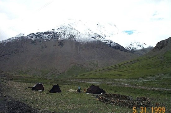 시내를 벗어나면 쉽게 유목민을 만나리라는 기대와는 달리 자갈이 드러난 산과 장마비로 패인 들판에는 아무것도 없었다. 쉽게 만나리라 기대를 했던 우리가 잘못이었다. 티베트는 중국변방의 고산지대이다. 눈이 듬성듬성 덮인 산악지대인 만큼 주위는 온통 황량한 벌판이다. 인구밀도가 사방 1킬로에 1.6명. 우리나라 인구밀도의 1/300. 여의도만한 면적에 평균 서너 명이 사는 편이다. 그나마 티베트 수도인 라사에 몰려 있는 편이니 히말라야 근처에 가서 사람을 만나기란 길가다 수표를 우연히 줍기보다 어려운 일이었다. 마주 보이는 산은 나무라고는 무릎높이의 덤불 뿐, 거친 돌들이 금방 굴러 내릴 듯, 패인 고랑위에 걸려 있어서 그 속을 내보이고 있었다. 그 산과 도로 사이에 그나마 평지가 있는 곳에 소들이 뜸뜸이 보이고 이를 따라 다니는 목동들이 듬성듬성 떨어진 소들 사이로 보일 뿐이었다.