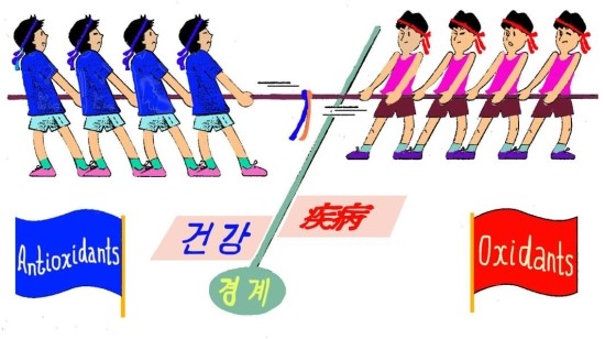 그러니 우리 몸은 항산화 효소와 코엔자임큐텐 같은 항산화 시스템이 방어를 하고 있는 셈이다. 결국 우리 몸이 병에 걸리는 가 아닌가는 얼마나 방어체계가 견고한가에 달려있다. 내부에서 끊임없이 발생하는 호흡의 부산물인 활성산소, 외부에서 계속되는 스트레스 (자외선, 발암물질, 공해..)로 유발된 활성산소를 잘 제거한다면, 이들이 주로 해를 미치는 지질, 단백질 등 세포내 중요물질을 보호할 수있다. 결국 몸이 망가지는 것을 , 노화되는 것을, 막을 수있다는 이야기이다.