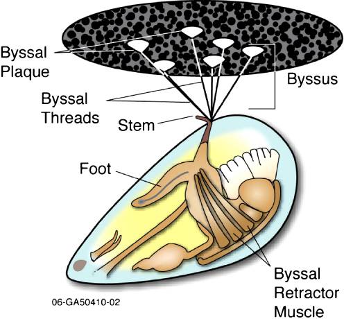 늘 파도가 일렁이는 바위에 단단히 몸을 붙이는 홍합의 접착력은 어디에서 오는 것일까? 바다에서 어딘가에 붙어사는 접착 생물은 늘 골칫거리이다. 특히 배의 하단에 달라붙는 따개비등 패류는 배의 운전에 많은 영향을 준다.