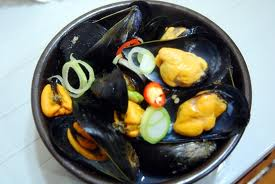 노란 빛으로 벌어져 있는 홍합은 소주의 최상의 안주이다. 양념간장에 살짝 찍어서 입에 담그면 갯냄새가 먼저 코에 닿는다. 물기를 머금은 홍합을 씹는 맛은 잘 데친 물오징어를 씹는 맛과는 또 다르다. 홍합이 완전히 홍합껍질에서 분리되어 있는 경우는 드물다. 많은 경우 껍질과 함께 요리되어서 그대로 나온다. 검정색의 껍질과 노란색의 홍합은 그 자체로 색의 조화를 이룬다. 홍합요리의 최고 맛은 국물에서 나온다. 담백하면서도 칼칼한 맛은 소주 안주로는 좀 약하다. 오히려 소주 안주로 씹은 닭똥집의 매운 맛 다음에 홍합탕의 국물이면 최상의 조합이다. 특히 눈이라도 내리는 겨울밤이라면 포장마차안의 소주와 홍합국물은 앞에 앉은 친구만큼이나 사람답게 사는 방법 중의 하나이다.