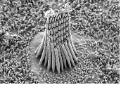 달팽이관은 이런 의미에서 생체 마이크로폰이라 할 수있다. 마이크로폰은 소리의 진동을 전기적 신호로 준다. 새끼손톱보다 작은 0.2 밀리리터(ml)의 작은 달팽이관은 30,000개의유모세포가 있고 19,000개의 신경섬유가 연결되어 있다. 즉 소리의 진동수를 30,000개의 세포가 30,000개로 분리한다고 해도 과언이 아니다. 아주 정밀하게 진동수를 분리해내는 정밀한 기계인 셈이다. 달팽이관의 중요한 세포인 유모세포는 머리카락 같은 소리전달목적의 기관이 50-60개 나와있어서 hair cell이라고도 불린다(그림 4,5 참조). 이 머리카락보다 훨씬 더 가느다란 선이 유모세포의 머리카락구조와 신경섬유를 연결해주고 있다. 이 가느다란 선은 소리에 흔들리는 유모세포의 움직임에 따라 이온들이 들락거리면서 전기신호를 발생한다. 이 전기신호를 초당 200번 이상 보내주고 있는 가장 예민한 기관이다. 한번 끊어지면 재생이 되지 않으니 아주 예민하고 중요한 연결선이라 할수 있다. 그러니 함부로 큰 소리의 음악을, 이어폰으로 들으면 안되는 이유이다.