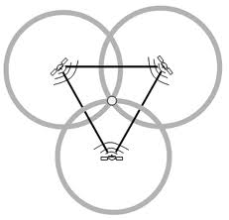 (그림; GPS 원리; 세점에서의 거리를 알면 위치를 정확히 알 수 있다)