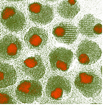(사진; 암세포와 자성입자; 암세포에 달라붙은 나노자성입자)