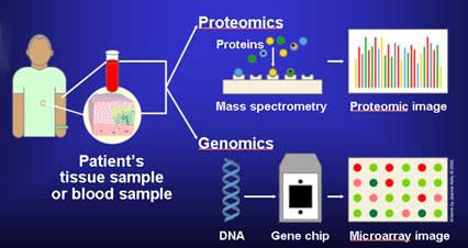 세포가 살아가려면 유전자가 일을 해야 한다. 예를 들자. 밥이 들어오면 밥알을 분해하는 효소(아밀라아제)를 만들어 내야한다. 그러려면 그 아밀라아제 유전자가 켜져야 한다. 켜져서, 즉 전사되어 mRNA를 만들고 여기에서 단백질(protein), 즉 아밀라아제가 만들어져야 한다. 인간유전체에는 약 24,000개 유전자가 이런 일을 한다. 이들이 만들어내는 단백질들은 효소, 호르몬, 콜라겐 등 다양한 종류들이 있다. 이놈들이 세포를 움직인다. 이들을 연구하는 것이 단백질체(proteomics) 분야다(사진).