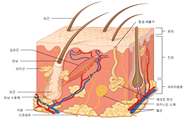 사진1-1: 피부구조: 표피, 진피, 피하지방으로 구성되고 모발, 땀샘(한선)등이 있다