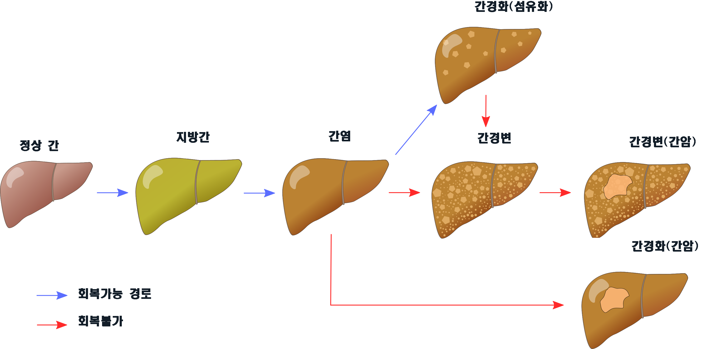 지방간은 간염, 간경변으로 진행한다.
