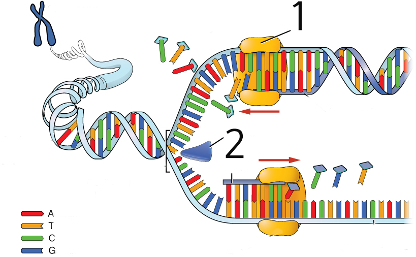 애인과 드라이브 데이트를 하고 있던 과학자 ‘캐리 멀리스’ 머릿속에 애인 대신 갑자기 세포 속 DNA가 보였다. 세포는 DNA 자기 복제를 해서 수를 불려 나간다. DNA 복제는 지퍼를 열고 그 지퍼를 두 개로 복제하는 것과 같다(그림 참조). 즉 DNA 이중나선을 지퍼처럼 열어젖힌다. 그리고 두 가닥 DNA를 복제한다. 이때 복제를 처음 시작하는 곳에 DNA 조각(프라이머)을 붙인다. 일종의 비빌 언덕인 셈이다. 이 DNA 조각에 큰 덩치의 DNA 복제효소가 달라붙는다. 그리고는 DNA를 쭉 읽어 나가면서 DNA를 복제한다. 복제는 DNA의 염기 순서에 매칭되는 염기를 끌어 붙이는 과정이다. 과학자 모리스는 옆에 있는 애인을 까맣게 잊었다. 대신 그의 두뇌는 DNA 복제를 바꾸기 위해 빠른 속도로 회전했다. 세포 속에서 일어나고 있는 과정을 모방해서 실험실에서 DNA 복제를 시키면 어떨까. 그럴 수 있다면 어떤 DNA이든 몇 배로 수를 불릴 수 있다. 그렇게 되면 이 방법으로 할 수 있는 일들이 많아진다.