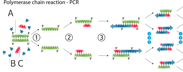애인과의 데이트를 급히 끝낸 과학자 모리스는 실험실에서 이를 시도해봤다. 복사를 시작하는 부분에 DNA 조각을 붙이고 복제효소를 집어넣으니 거짓말처럼 그 부분 DNA가 복제되었다. 문제는 계속해서 복제하게 만드는 일이었다. 연속적으로 복제가 되면 1->2->4->8->16->32.... 식으로 DNA 가닥수가 폭발적으로 증가한다. 그러려면 DNA를 두 가닥으로 분리하는 높은 온도 조건이 필요했다. 그건 온도를 올리면 된다. 문제는 그때 DNA 중합효소가 고온으로 죽어버리는 거다. 고온에서도 작동하는 DNA 중합효소가 필요했다. 행운이 따랐던 걸까. 이미 다른 과학자들이 고온에서도 작동하는 중합효소를 찾아냈었다. 미국 옐로스톤 공원의 75℃ 온천물에서 살고 있는 고온성 미생물 내부의 중합효소였다. 애인과 헤어지는 아픔을 실험으로 견디었을까. 그의 연구는 PCR(Polymerase Chain Reaction: 중합효소 연쇄반응)이라는 보물을 탄생시켰다. PCR은 아주 적은 양의 DNA도 무한대로 증폭시키는 기술이다. DNA를 증폭시키면 무슨 일을 할 수 있을까. 먼저 호호백발의 할머니도 알고 있던 코로나 검출 기술을 보자.